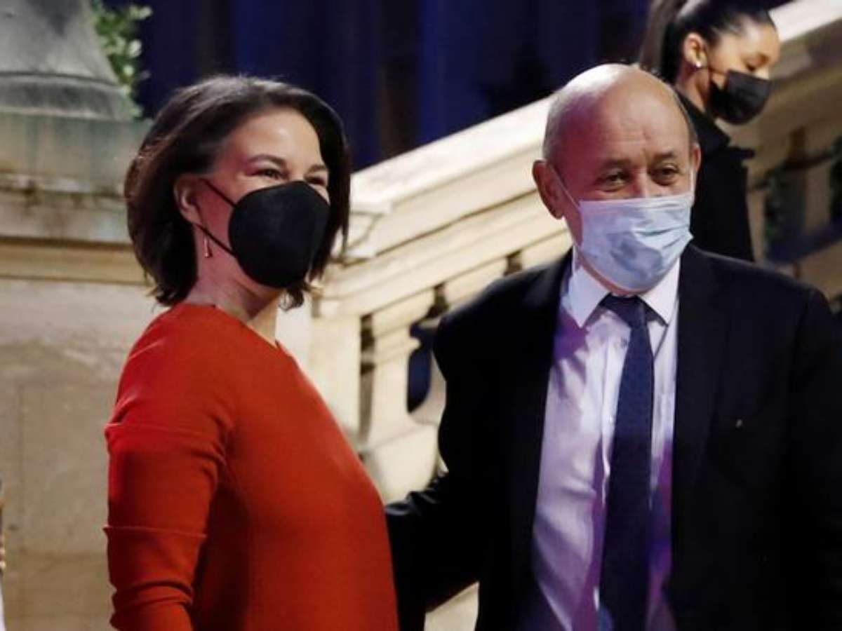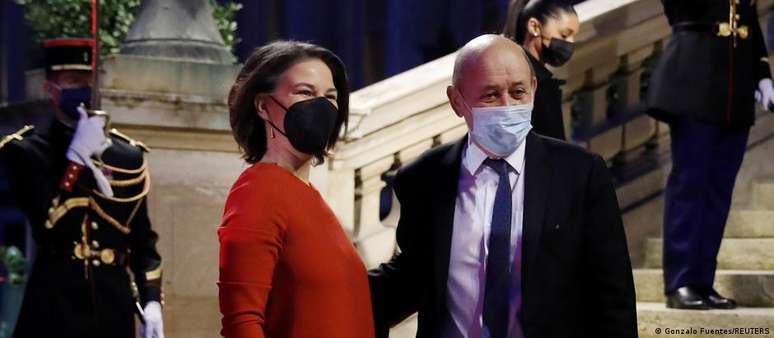 Baerbock e Le Drian demonstraram unidade em relação ao conflito na Ucrânia. A ministra alemã ameaçou Rússia. "A Rússia pagará um preço político e sobretudo econômico por uma nova agressão à soberania ucraniana", declarou.