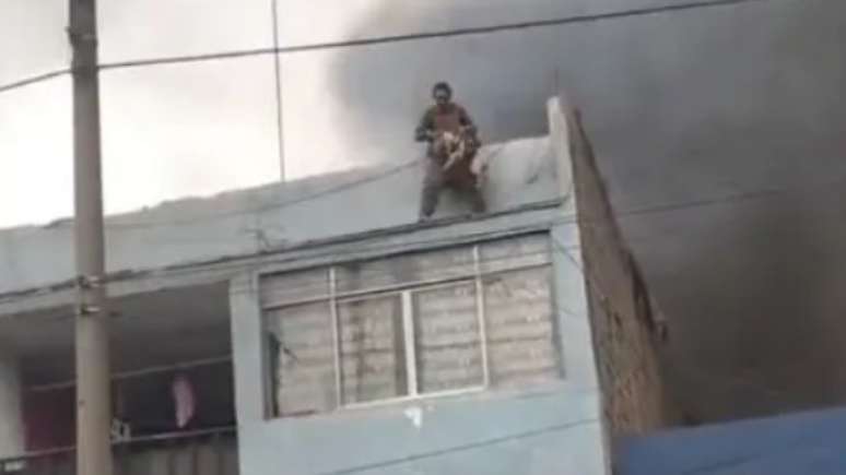 Com aplausos, assobios e saudações, um morador de rua resgatou 25 cães de um prédio de três andares incendiado em Lima, no Peru.