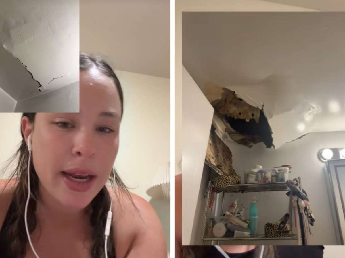Moradora de Nova York abandonou apartamento após o teto desabar, liberando água e milhares de baratas; caso viralizou no TikTok e obra está em andamento no local.