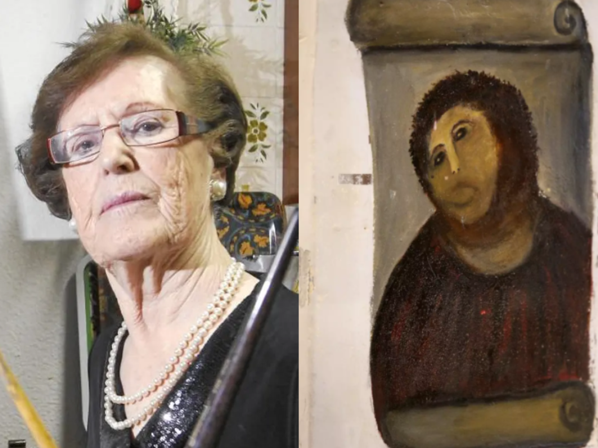 Morreu, aos 94 anos, Cecilia Giménez, autora de uma famosa restauração amadora da pintura 'Ecce Homo' em 2012, que, apesar de viralizar como a 'pior restauração da história', trouxe grande fluxo turístico para Borja, na Espanha.