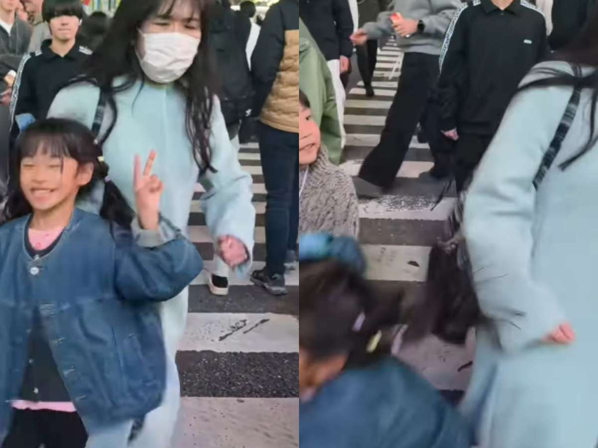 Ao publicar o vídeo, a mãe, que é chinesa e está passeando pelo Japão, escreveu: "Já é nossa última noite. Fui até o famoso cruzamento de Shibuya para tirar fotos. Mas acabou acontecendo de uma pessoa mal-intencionada empurrar minha filha com força".