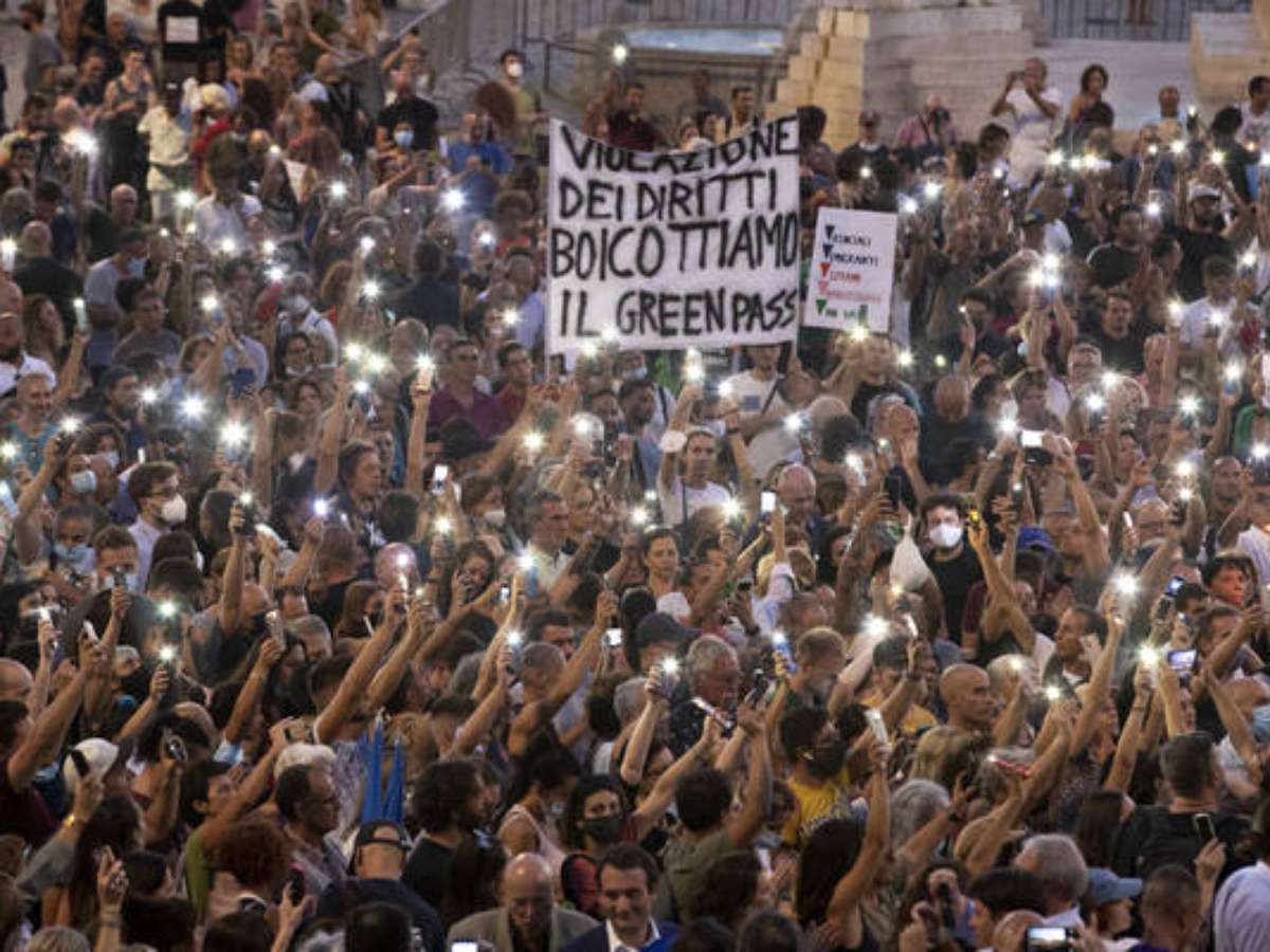 Uma multidão foi às ruas de Roma, Trento, Palermo, Milão, Turim, Bolonha, Pádua, entre outros municípios, simultaneamente com tochas e cartazes para pedir "liberdade" de uma "medida ditatorial".