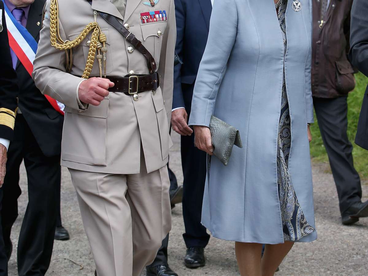 O Príncipe de Gales, Charles, e a duquesa de Cornualha, Camilla, chegam para homenagens a veteranos de guerra perto da ponte Pegasus (também conhecida como Ponte Bénouville - a tomada desta ponte na região francesa foi uma importante vitória estratégica dos Aliados), durante as comemorações dos 70 anos do Dia D, nesta quinta-feira em Ranville, na França