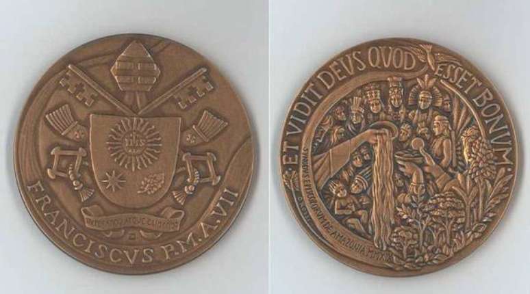 A medalha oficial em celebração ao 7º ano do pontificado do papa Francisco será dedicada ao Sínodo dos Bispos sobre a Amazônia, que ocorrerá entre 6 e 27 de outubro, informou o Vaticano nesta sexta-feira (9). Segundo comunicado da Santa Sé, a medalha estará disponível à venda a partir da próxima segunda-feira (12) na Livraria Editora Vaticana e na Administração do Patrimônio da Sé Apostólica.