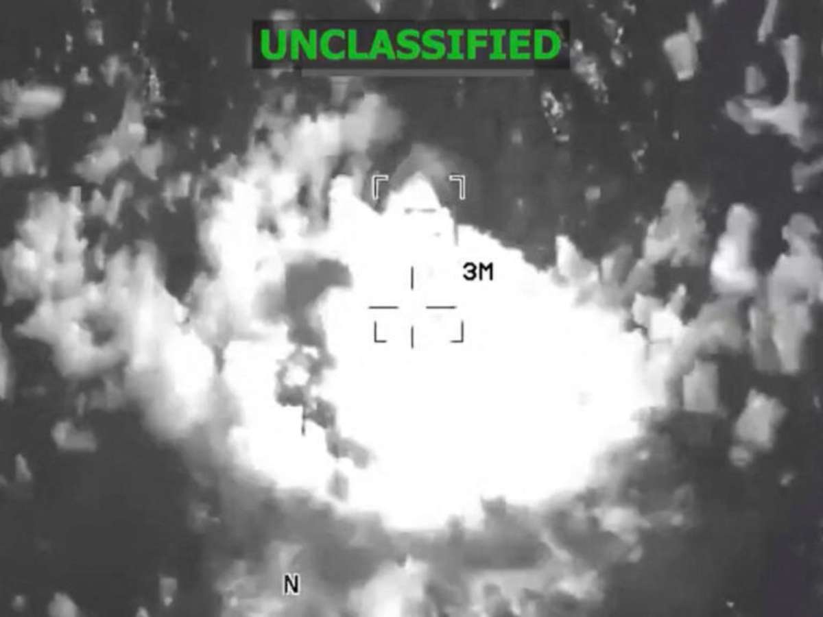 A publicação, acompanhada de um vídeo, mostra bombardeios às embarcações em alto mar.