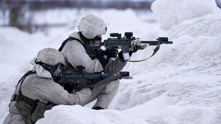 Entre as tropas profissionais que participam deste exercício da Otan, estão membros da guarda nacional da Noruega - na sua maioria, soldados em tempo parcial.