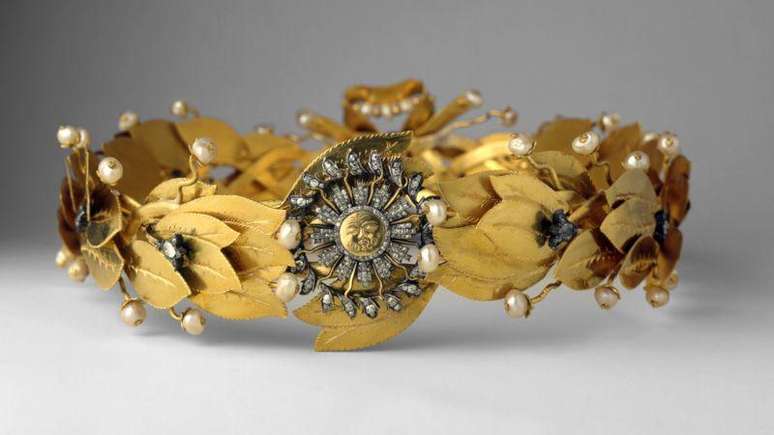 Elaborada com 47 folhas de louro feitas de ouro, 49 pérolas barrocas, 9 diamantes grandes e 274 diamantes menores, ela era conhecida como a grinalda cívica. É considerada uma "joia esplêndida", que poderia muito bem adornar a cabeça de grandes imperadores, como Júlio César ou Napoleão Bonaparte.
