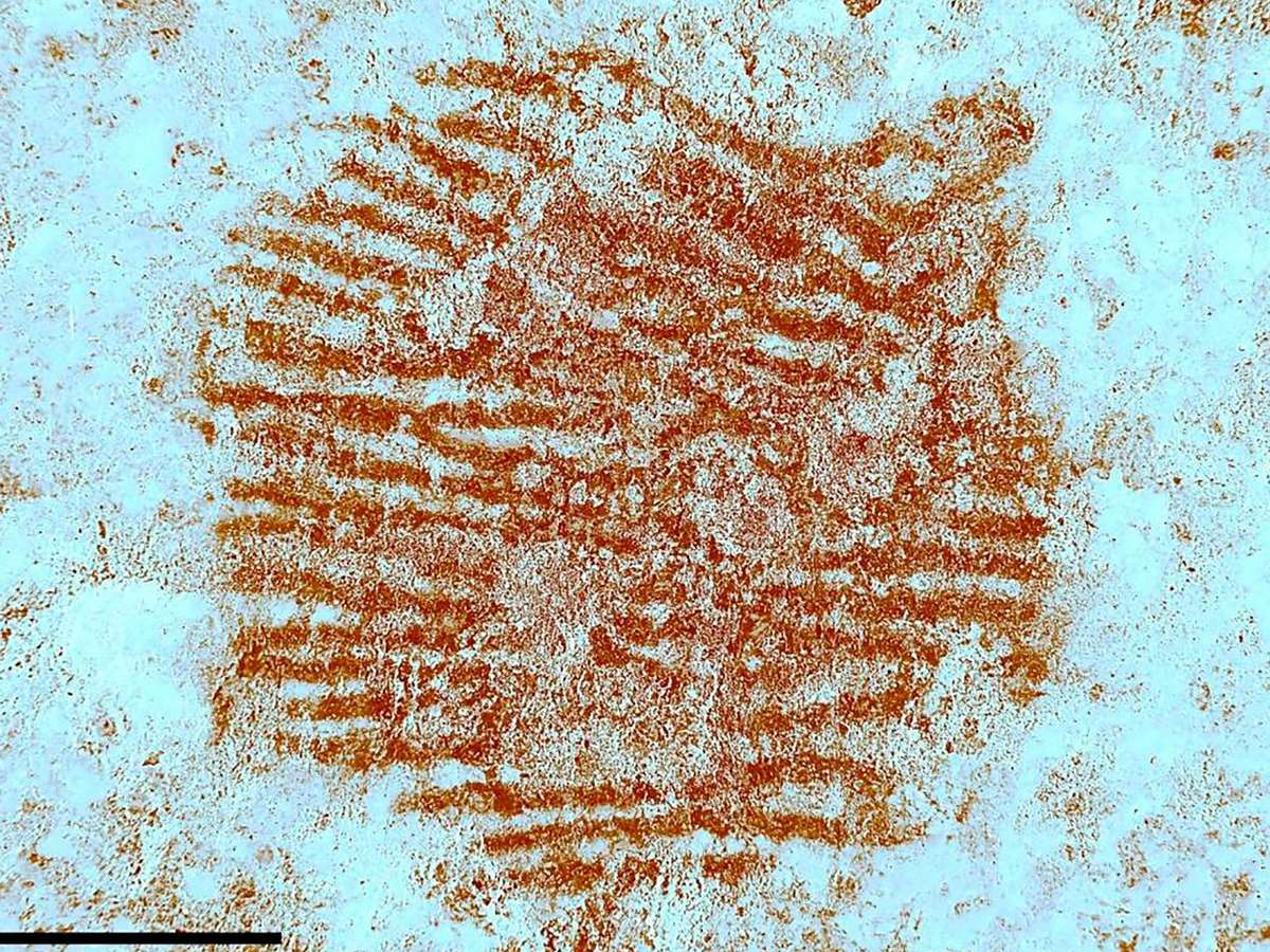 Os pesquisadores acreditam que a marca não foi acidental porque, de acordo com suas descobertas, o pigmento vermelho não existe naturalmente no abrigo, o que significa que ele foi "intencionalmente levado" para lá.