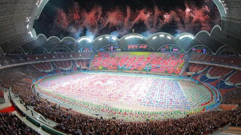 Os Jogos de Massa da Coreia do Norte são um evento enorme de propaganda com milhares de participantes, muitos deles crianças, com movimentos e coreografias em sincronia perfeita. Eles são planejados para celebrar o país e elevar o moral da população.
