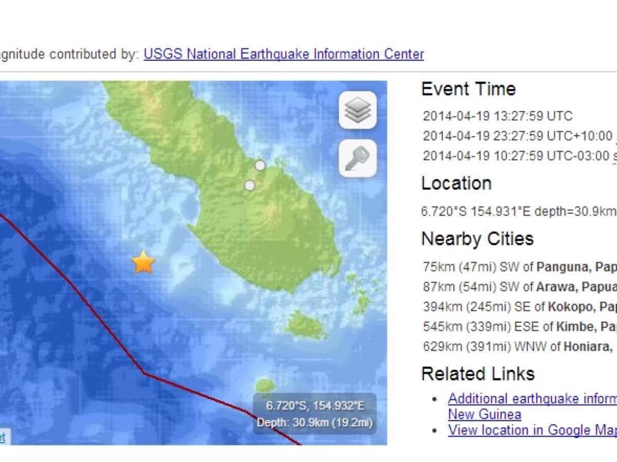 O terremoto ocorreu a uma profundidade de 10 km, afirmou o Serviço Meteorológico Nacional. Epicentro foi a 75km de Panguna, sudoeste de Papua Nova Guiné.