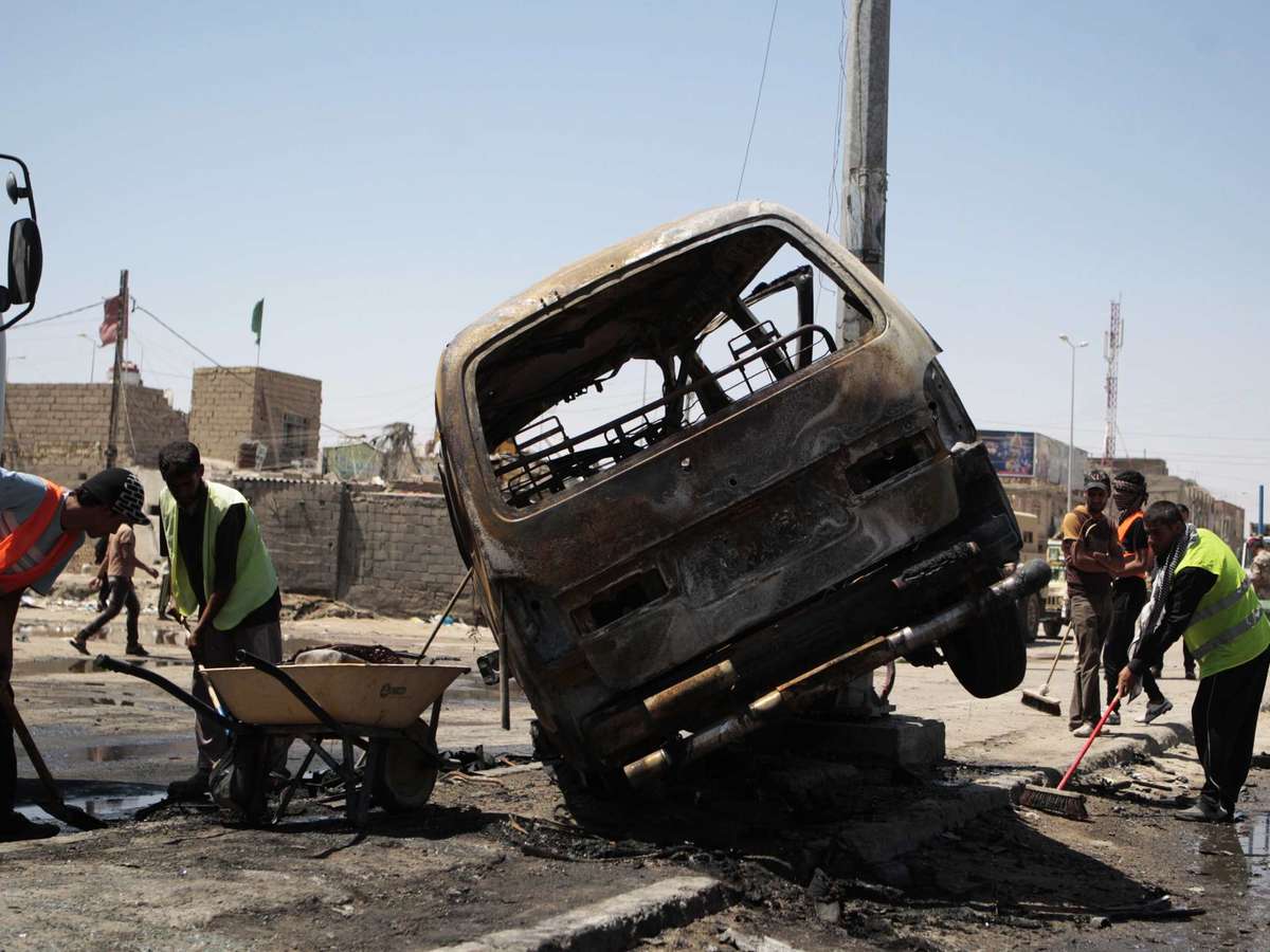 No bairro de Sadr City, reduto xiita em Bagdá, uma minivan se aproximou de um grupo de trabalhadores diaristas que estava numa calçada, e o motorista convidou todos para entrar no veículo, para em seguida detoná-lo, segundo policiais e testemunhas.
