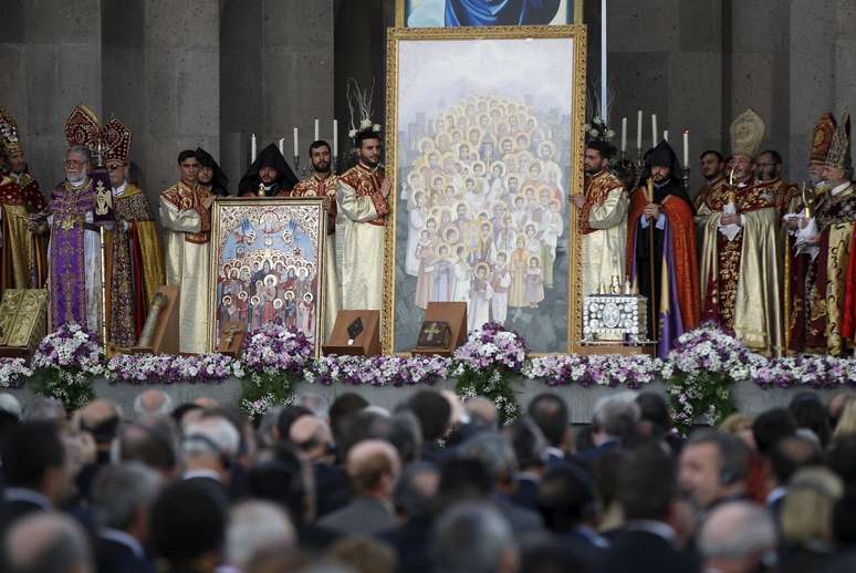 A cerimônia de canonização das 1,5 milhão de vítimas do genocídio armênio, perpetrado pelos turcos otomanos, foi realizada nesta quinta-feira na Armênia, na véspera das cerimônias oficiais do centenário dos massacres.