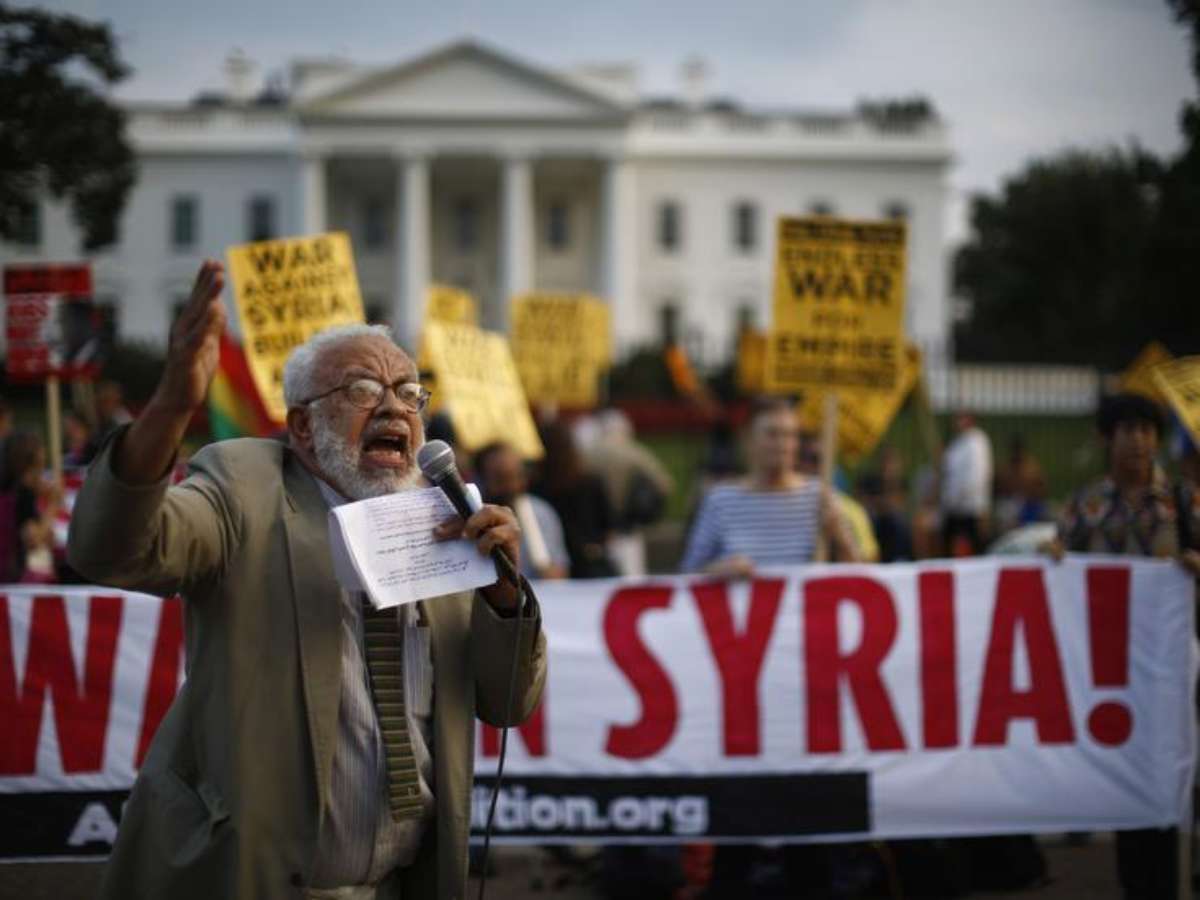 Manifestantes protestam contra eventual ataque à Síria em frente à Casa Branca