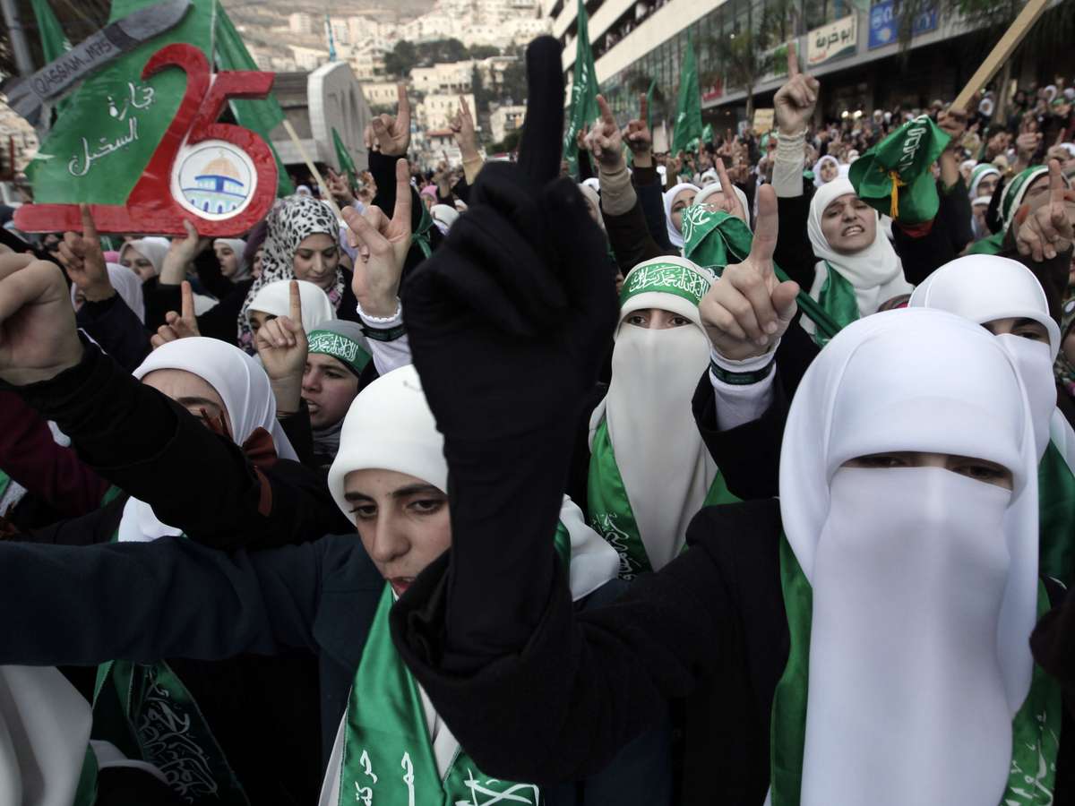 Os participantes portavam bandeiras verdes do Hamas, fotos de presos palestinos e um grupo de mulheres carregavam foguetes de papelão simulando os foguetes Qassam lançados contra Israel de Gaza. "Brigadas Al Qassim (braço armado do Hamas), o orgulho da revolução", "Hamas, és forte" ou "Todos queremos unidade contra o inimigo israelense" eram algumas das palavras de ordem cantadas pelos presentes: mulheres, homens, jovens e adultos.
