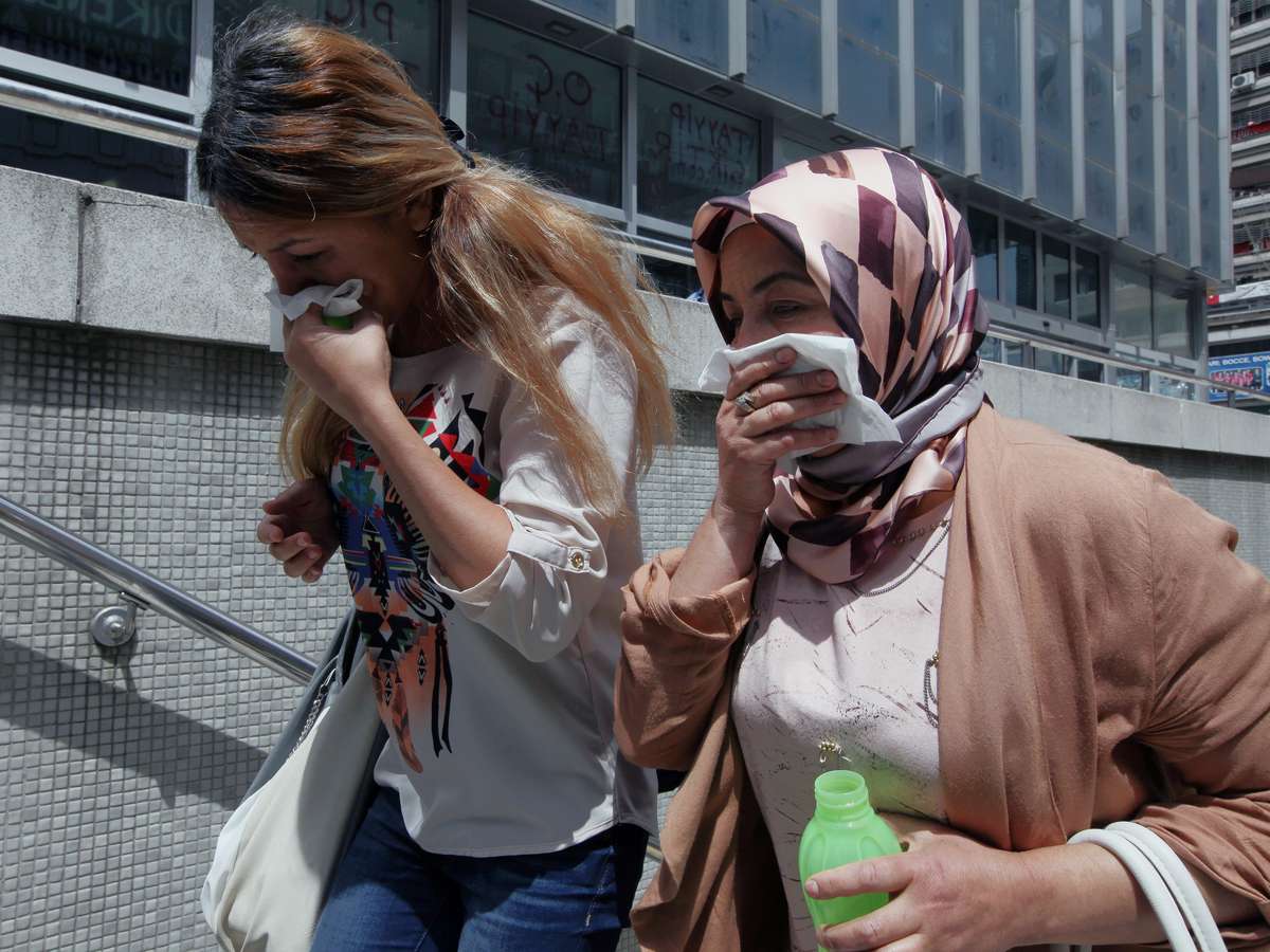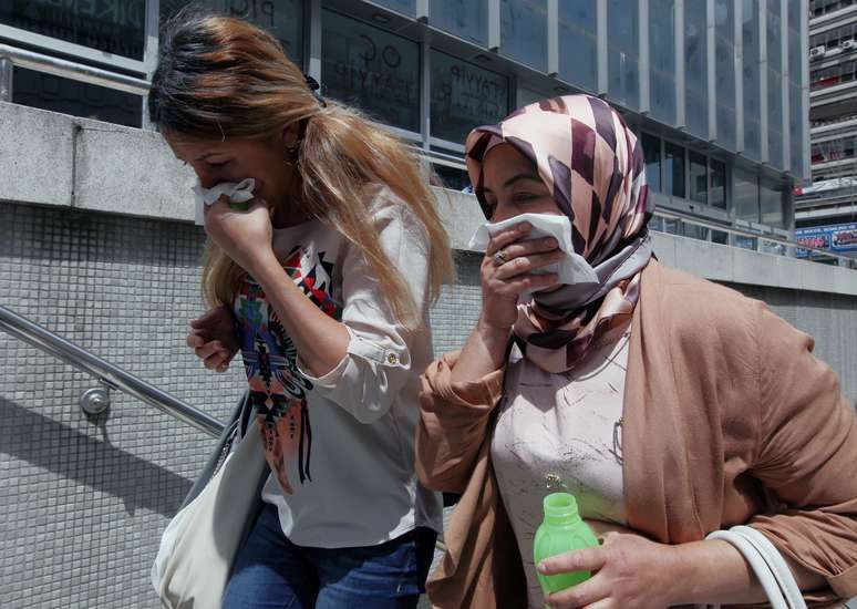 4 de junho - Mulheres afetadas por gás lacrimogêneo buscam proteção durante protesto nas proximidades do sede do governo turco, em Ancara
