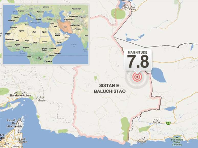 O terremoto foi registrado a 83 km da localidade de Khash e 81 km de Saravan, na província iraniana de Sistan e Baluchistão, às 7h44 de Brasília. O epicentro do sismo teve uma profundidade de 82 km. Segundo informações da televisão iraniana Press TV, pelo menos 40 pessoas morreram, mas ainda não há confirmação oficial.