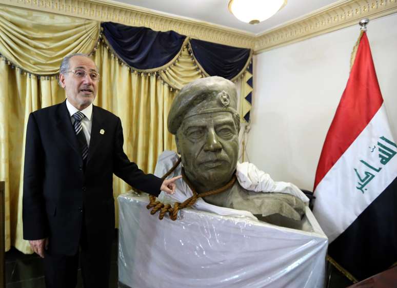 Um busto de Saddam Hussein com a corda que o enforcou ao redor do pescoço adorna o gabinete de Muafak al-Rubaie, testemunha dos últimos instantes do ex-ditador iraquiano executado no dia 30 de dezembro de 2006. Ex-conselheiro de segurança nacional, ele considera que Saddam merecia mil vezes a morte, mas reconhece que foi valente em seus últimos momentos.