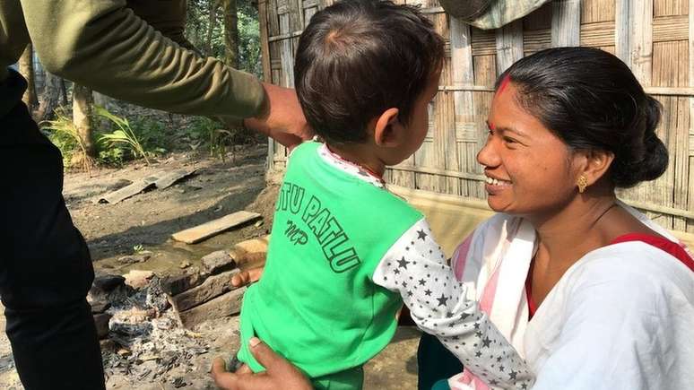 "Na primeira vez que o vi, percebi que ele se parecia com meu marido. Fiquei muito triste, chorei. Somos da tribo Bodo, não nos parecemos com outras pessoas de Assam ou com muçulmanos. Nossos olhos são levemente puxados, nossas bochechas são mais pronunciadas e nossas mãos, mais gordinhas. Somos diferentes, temos características mongóis", diz Shewali Boro.