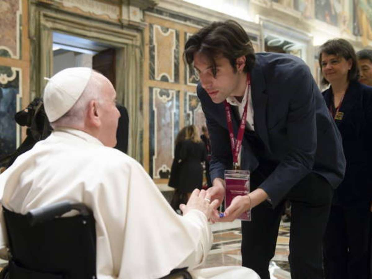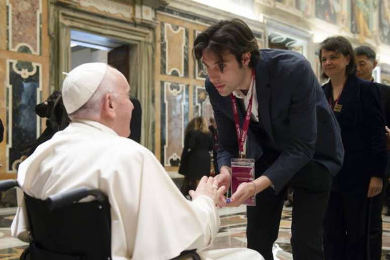 O pontífice chegou empurrado por um ajudante a uma audiência com estudantes e professores da Universidade de Macerata, no centro da Itália, bem como para uma reunião com os chefes dos dicastérios da Cúria Romana.