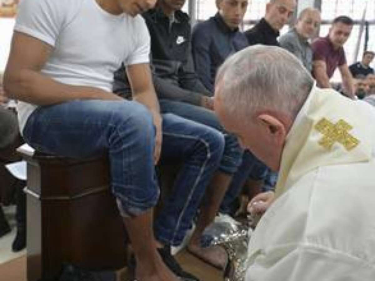 O Pontífice chegou à cadeia por volta de 11h30 (horário local) e celebrou a homilia "In coena Domini", a missa de Lava-Pés, para os detentos que cumprem pena no local. Ao longo da cerimônia, ele lavou e beijou os pés de 12 presidiários: nove italianos, um brasileiro, um marfinense e um marroquino.