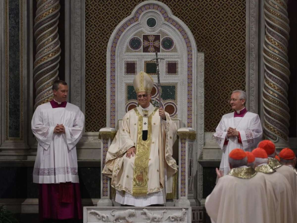 Robert Francis Prevost entrou na basílica pela Porta Santa, em procissão, e, em um gesto simbólico, sentou no trono daquela que é considerada a primeira basílica cristã do mundo e a "mãe" de todas as igrejas.