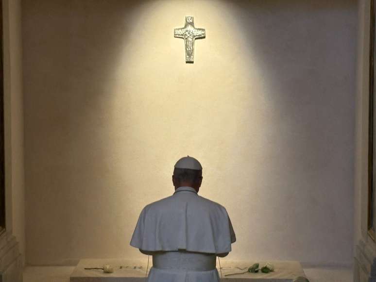 Em imagens divulgadas pelo Vatican News, é possível ouvir os gritos e aplausos dos fiéis que estavam no local. Além disso, uma foto publicada mostra o primeiro pontífice nascido nos Estados Unidos ajoelhado em frente ao túmulo do argentino.