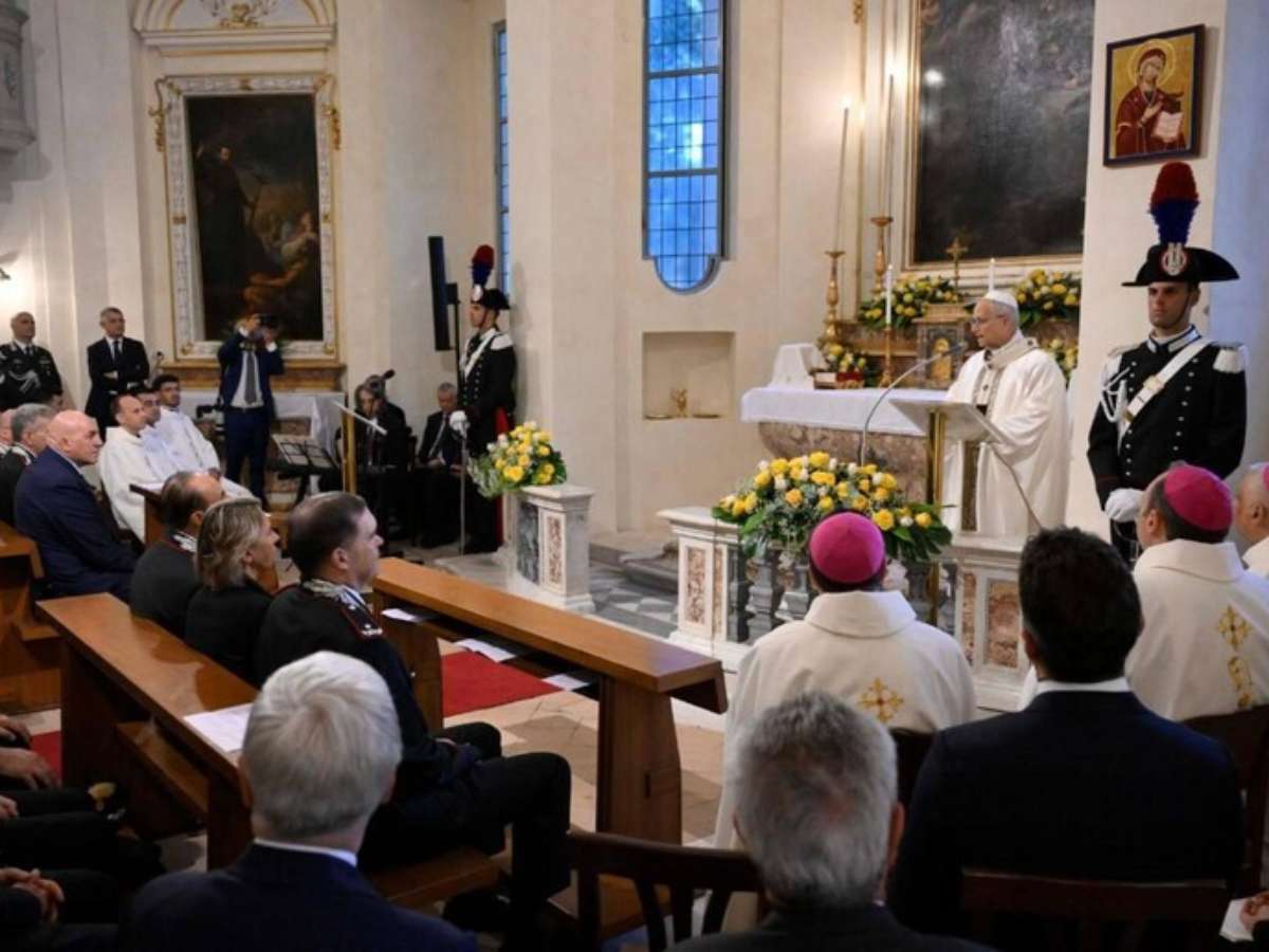 Além dos agentes, o ministro da Defesa da Itália, Guido Crosetto, também participou da missa, junto com outras autoridades militares do país, e sentou-se na primeira fileira.