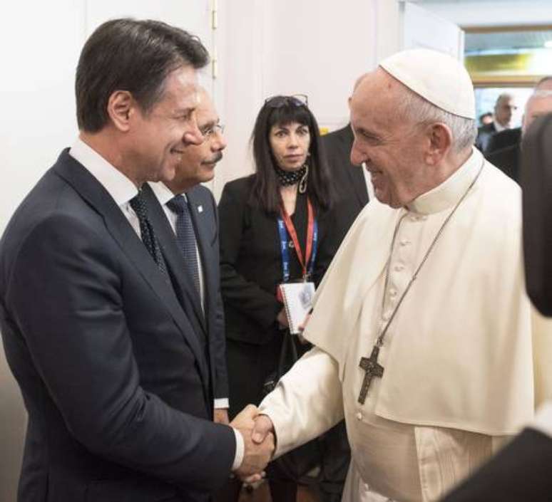 O papa Francisco se encontrou na manhã desta segunda-feira (30) com o primeiro-ministro da Itália, Giuseppe Conte, em meio à pandemia do novo coronavírus (Sars-CoV-2).