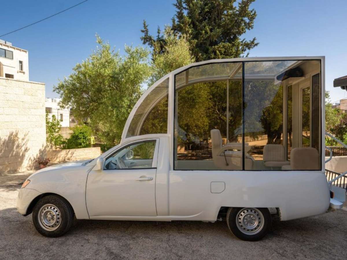 O papamóvel é o que Bergoglio utilizou em sua histórica viagem à Terra Santa em 2014, quase no início de seu pontificado. O veículo permaneceu em Belém como lembrança daquela visita, mas também como um símbolo de paz.