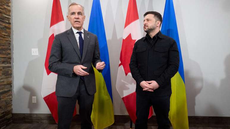O primeiro ministro do Canadá, Mark Carney, condenou a "barbárie" dos novos ataques russos em Kiev e ressaltou que qualquer acordo de paz na Ucrânia exigiria "uma Rússia disposta" a cooperar, enquanto recebia o presidente ucraniano, Volodymyr Zelensky, neste sábado (27).