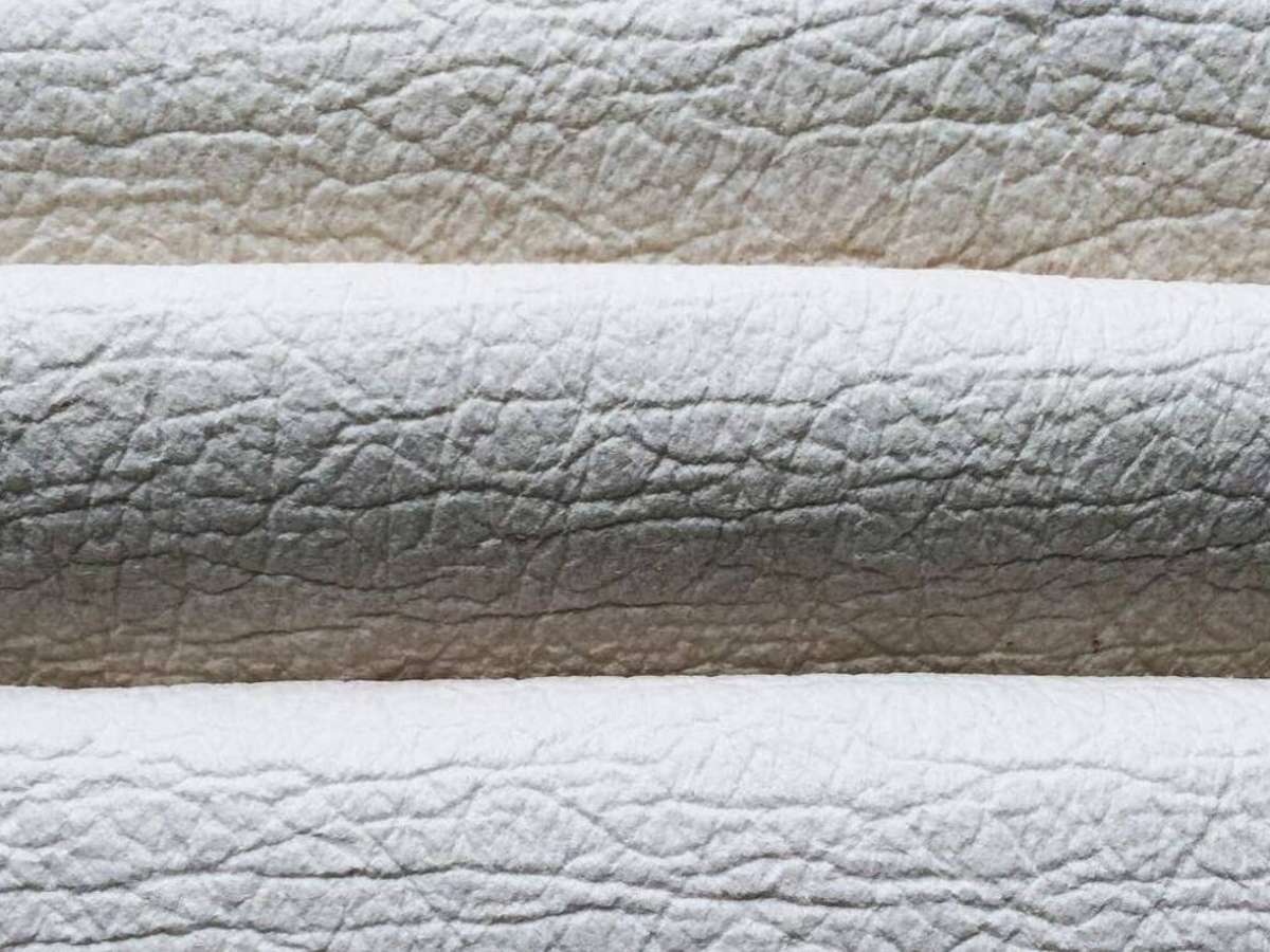 Depois da secagem, esses resíduos são misturados com ligantes, resinas de origem vegetal e, em alguns casos, pequenas frações de polímeros sintéticos para garantir estabilidade mecânica. A massa resultante é espalhada em lâminas, prensada e tratada para ganhar textura, espessura e cor. O objetivo é obter um "tecido" ou lâmina com comportamento semelhante ao couro bovino: resistente à tração, com toque agradável e boa durabilidade para ser usado em bolsas, calçados, jaquetas e estofados.