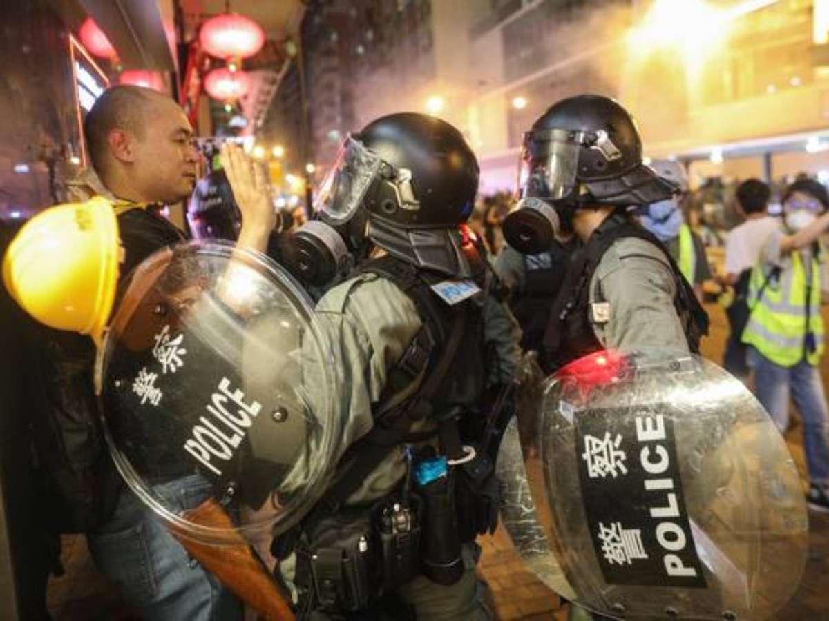 Neste momento, as forças de segurança lançaram gás lacrimogêneo contra a multidão, que se aglomerava perto de um escritório do governo da China. O ato deste domingo aconteceu apesar de uma proibição da polícia, acusada de abuso de autoridade pelos manifestantes.