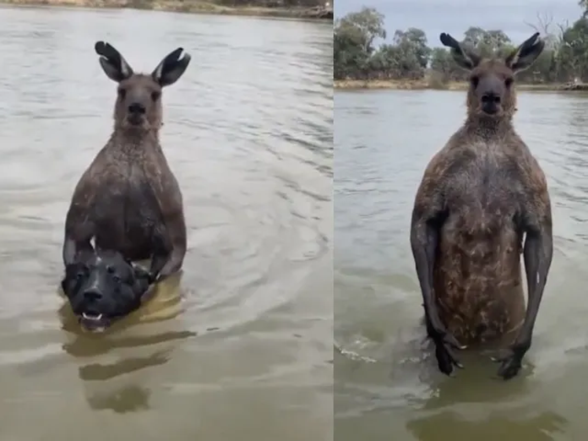Policial troca socos com canguru para salvar cachorro em rio; veja vídeo