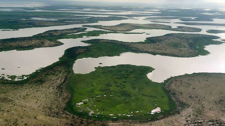 Hoje, o lago compartilhado por Níger, Nigéria, Chade e Camarões é como uma imensa colagem de grandes poças em meio a grandes extensões de terra.