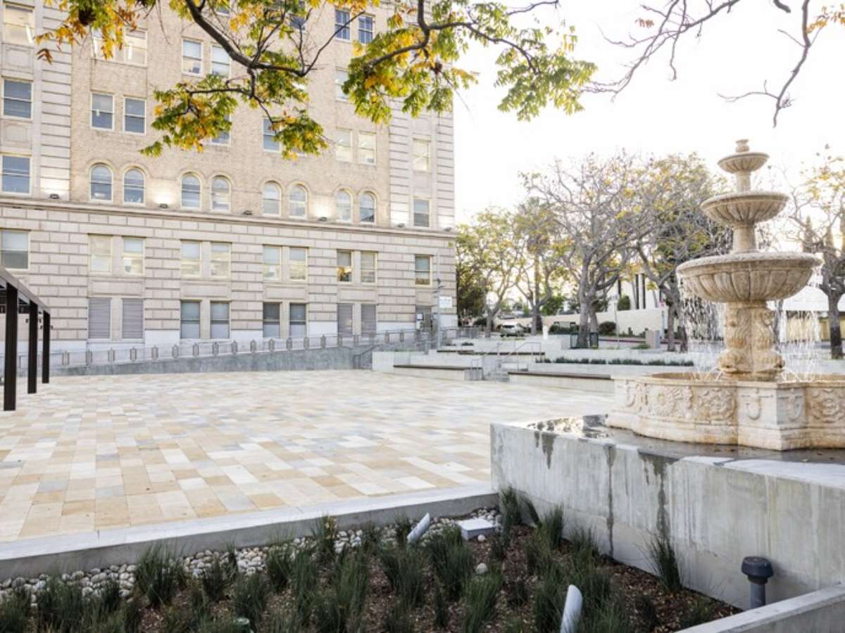 O novo espaço urbano conta com uma esplanada retangular pavimentada com pedra clara e abriga, em um de seus lados, a Fonte dos Pescadores, monumento que homenageia os trabalhadores do mar e simboliza a história da comunidade italiana local. Atualmente, San Pedro concentra cerca de 30 mil ítalo-americanos.