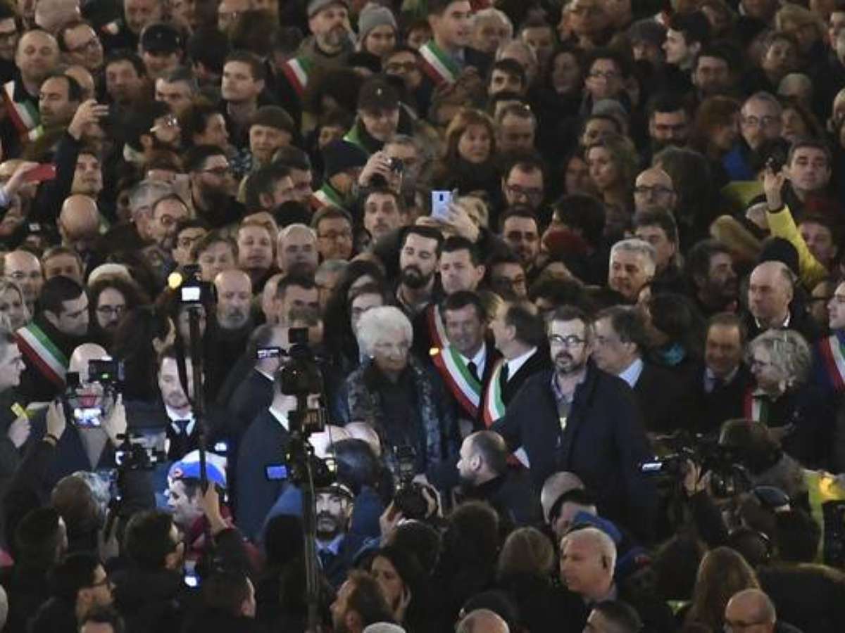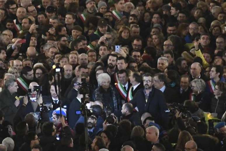Milhares de pessoas apoiadas por pelo menos 600 prefeitos italianos se reuniram na noite desta terça-feira (11) nas ruas de Milão, na Itália, para uma marcha a favor da senadora vitalícia Liliana Segre, sobrevivente do campo de extermínio de Auschwitz e vítima de ataques de ódio e ameaças de morte. Ao som da música "Bella Ciao", música símbolo da resistência italiana contra o nazifascismo, a procissão atravessou a famosa Galleria Vittorio Emanuele II e seguiu até a Piazza Scala. O ato foi organizado pela cidade de Milão com o auxílio da Associação Nacional dos Municípios Italianos (ANCI), da União das Províncias Italianas (UPI) e das Autonomias Locais Italianas (ALI) e contou com a presença de mais de 600 prefeitos e seus representantes, incluindo Beppe Sala (prefeito de Milão), Federico Pizzarotti (prefeito de Parma), Leoluca Orlando (prefeito de Palermo), Paolo Truzzu (prefeito de Cagliari), entre outros.