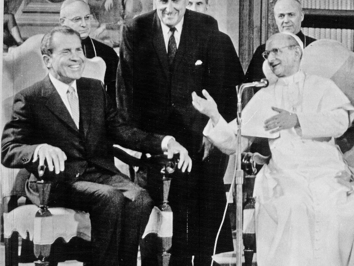 28 de setembro de 1970: O presidente Richard Nixon conversa com o Papa Paulo VI durante um encontro no Vaticano. O presidente Barack Obama encontrará o Papa Francisco pela primeira vez nesta quinta-feira