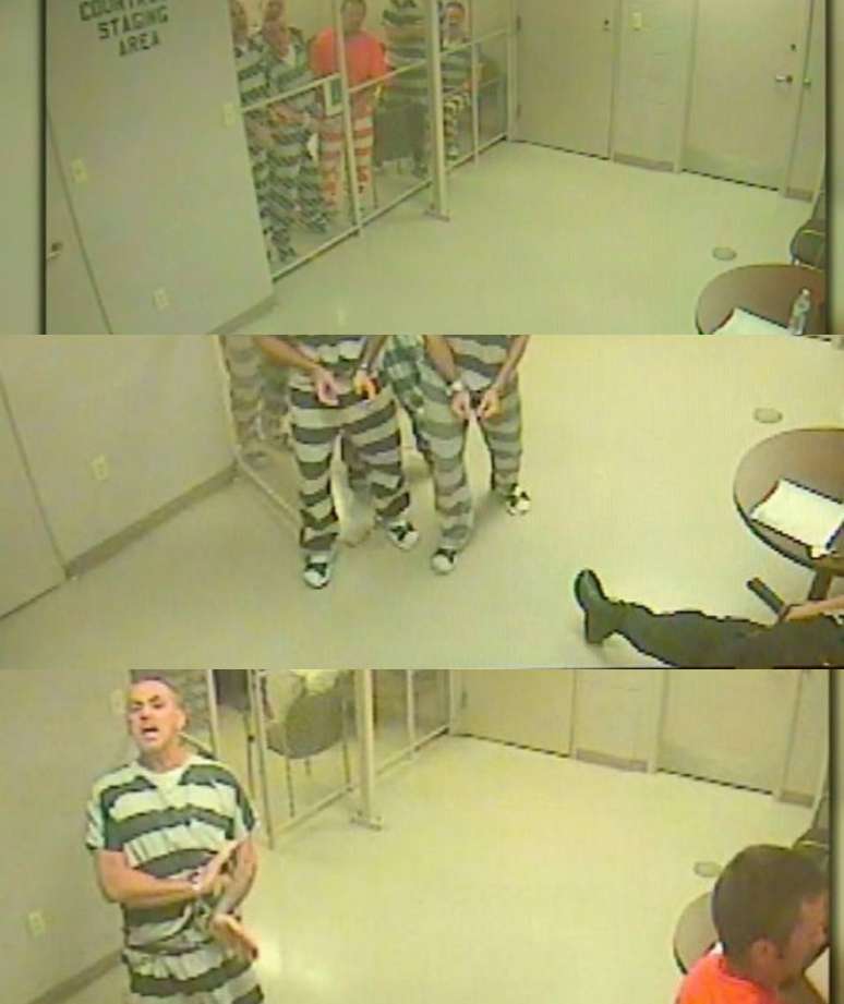 Oito presos que aguardavam julgamento nos Estados Unidos escaparam da cela para ajudar um guarda inconsciente.