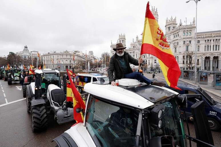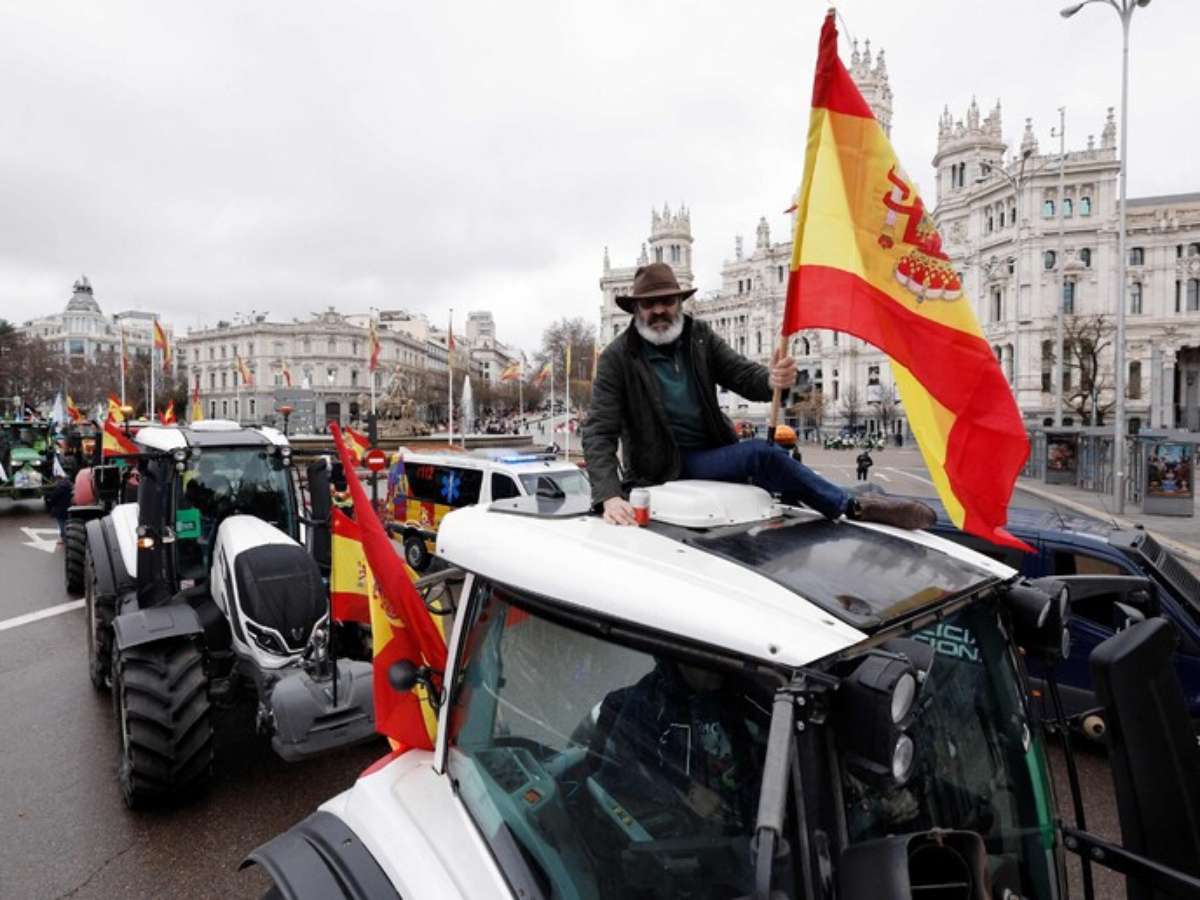 Cerca de 1,5 mil agricultores, segundo dados da Prefeitura de Madri, agitaram bandeiras da Espanha e denunciaram o impacto do acordo UE-Mercosul sobre os trabalhadores europeus.