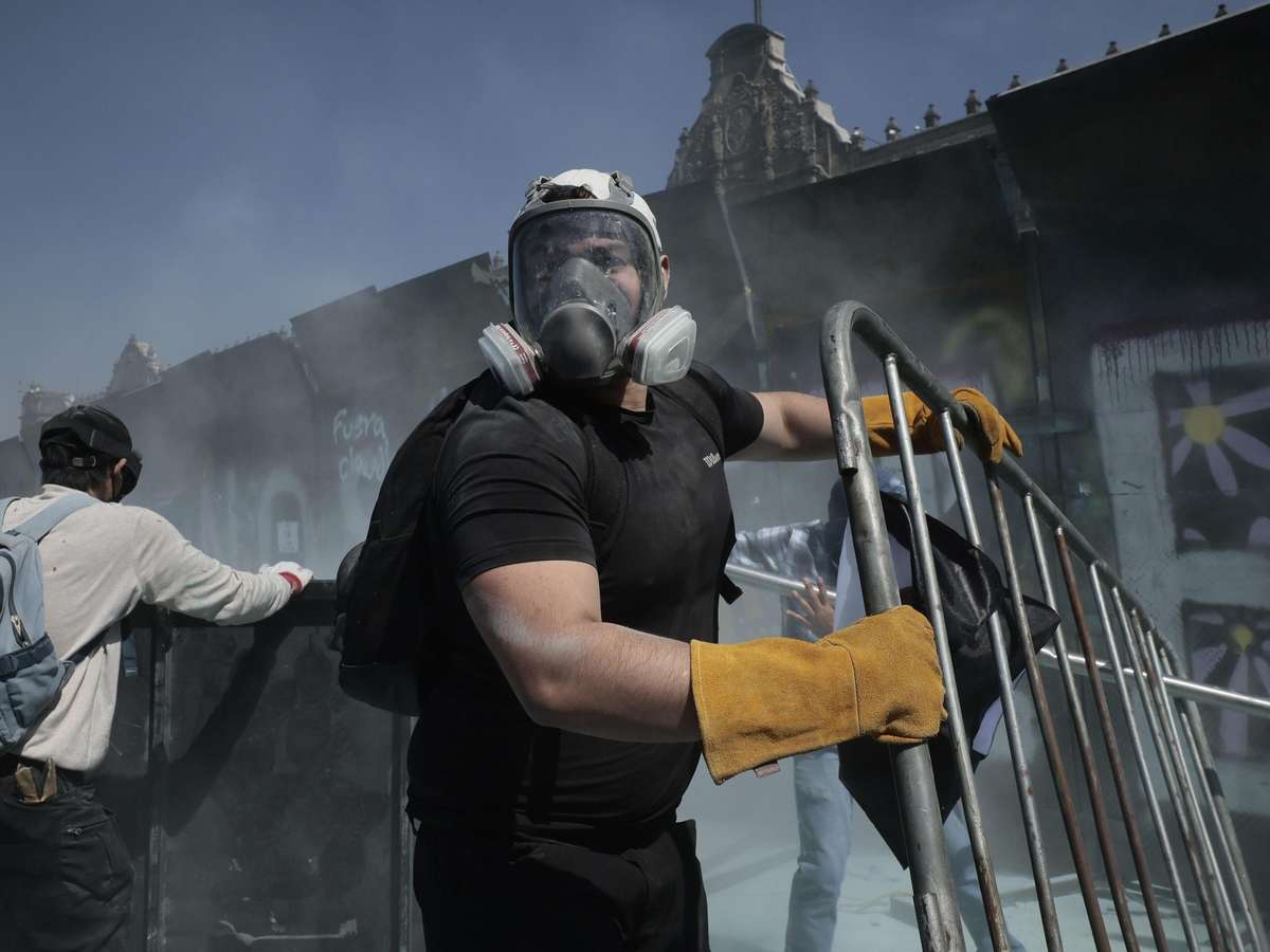 Manifestantes desmontaram partes de uma barreira que protegia o Palácio Nacional, onde Sheinbaum mora. A polícia responsável pela segurança do complexo usou gás lacrimogêneo contra a multidão.