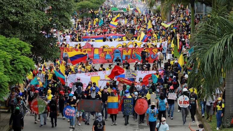 O projeto de lei da reforma tributária foi retirado, mas os protestos cresceram e passaram a ter como alvo a violência policial, a pobreza e a crise de saúde na Colômbia.