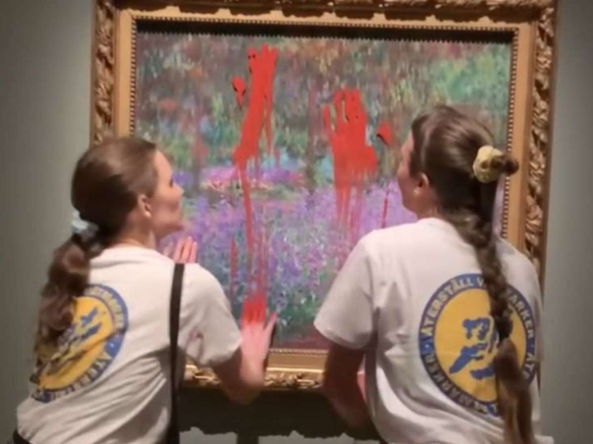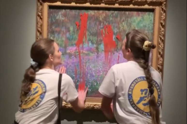 O vidro que protege um quadro do pintor Claude Monet foi atacado nesta sexta-feira (14), no Museu Nacional de Estocolmo. Duas ativistas jogaram tinta vermelha, segundo o g1.