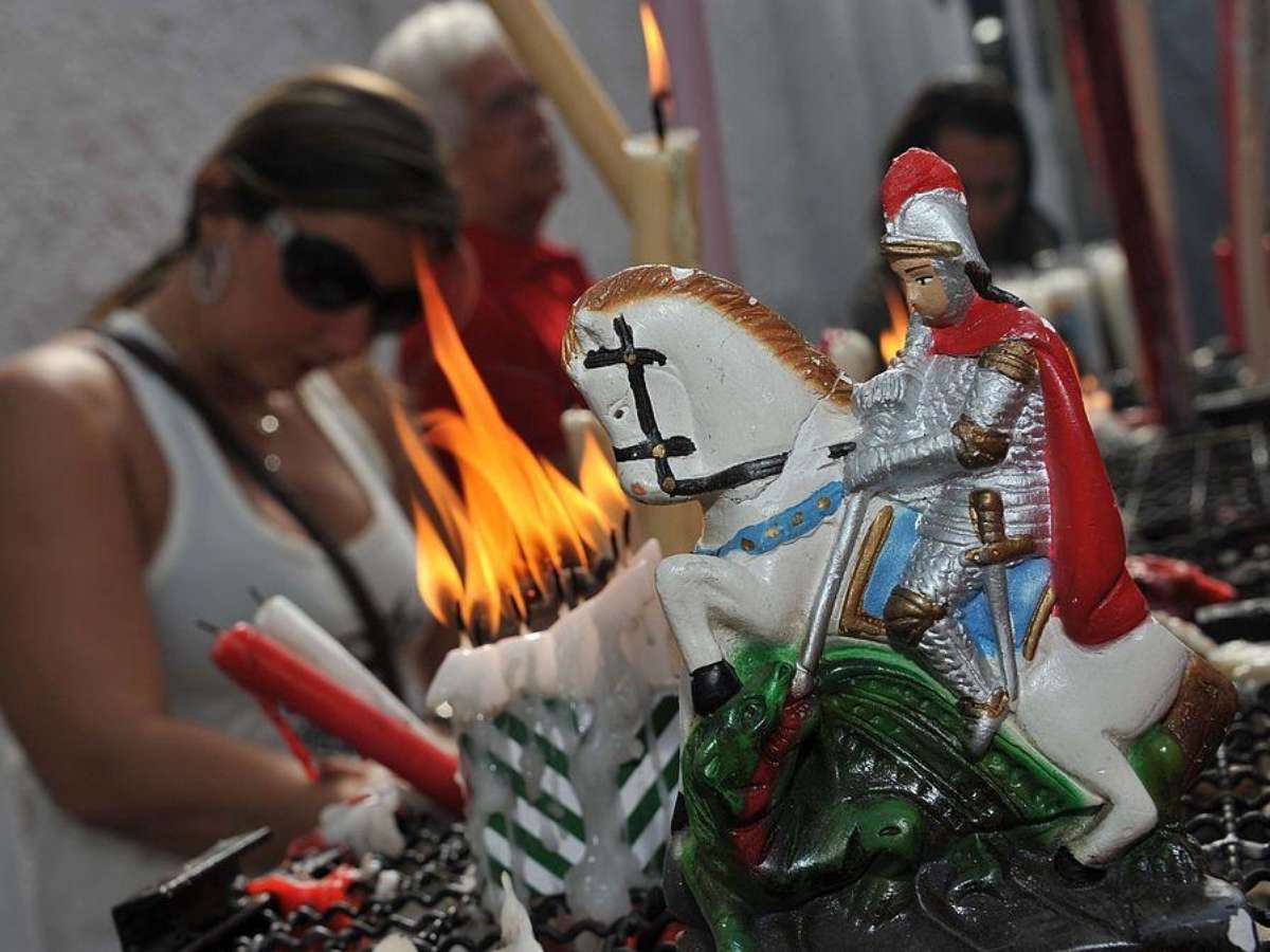 O dia do santo guerreiro costuma ser comemorado no Rio com missas em igrejas e na catedral da capital fluminense, além de cerimônias de devotos de São Jorge no mundo da música, especialmente do samba.