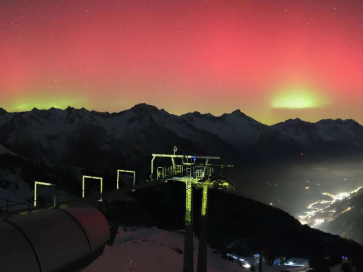 A aurora boreal captada sobre as Dolomitas, região montanhosa tombada pela Unesco como patrimônio mundial da humanidade, foi causada por uma forte tempestade geomagnética de classe G4 iniciada em 19 de janeiro e ainda em curso.