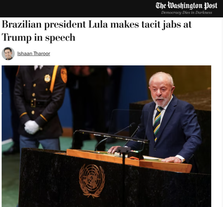 A imprensa internacional repercutiu as falas do presidente brasileiro Luiz Inácio Lula da Silva (PT) em seu discurso na Organização das Nações Unidas (ONU), na manhã desta terça-feira, 23.