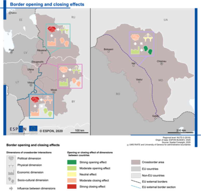 O grupo analisou as oportunidades empresariais em três regiões da Letônia e Lituânia na fronteira com a Rússia e Belarus; e a Moldávia na fronteira com a Romênia. Segundo o relatório, fazer fronteira com os europeístas favorece o desenvolvimento das empresas nas fronteiras externas, enquanto a situação oposta tem um forte efeito de fechamento.