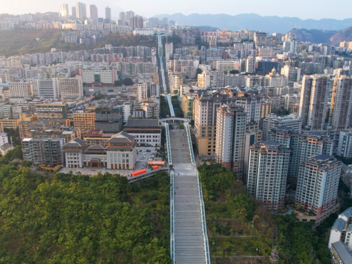 A escada rolante foi batizada de Deusa, e conecta os distritos superior e inferior da cidade, que está localizada em uma região montanhosa. Segundo a mídia chinesa, o tempo de viagem a pé entre as áreas montanhosas foi reduzido de cerca de uma hora para 20 minutos.