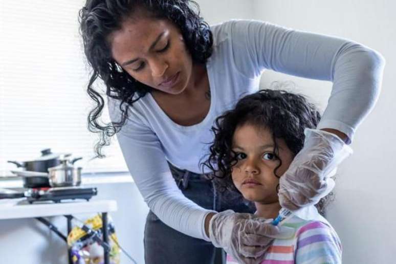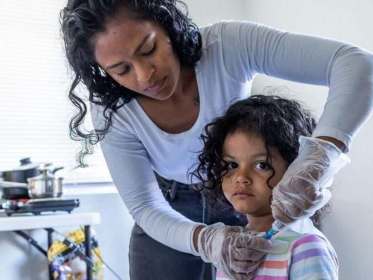 Sofia carrega o líquido de aspecto leitoso em uma mochila para onde quer que vá e, quando chega à sua aula na pré-escola, a enfermeira escolar o administra.