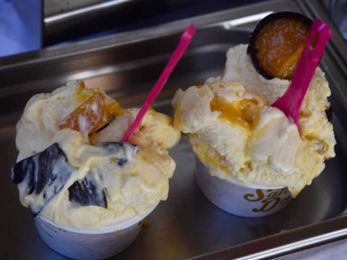O primeiro sorvete é feito de leite de cabra orgânico, seguido do gelato de creme de pêssego e vinho Montepulciano Malandrino de Cataldi Madonna. Depois é a vez do sabor dedicado ao Guerreiro de Capestrano: um sorvete com amêndoa de Capestrano e açafrão de L'Aquila.