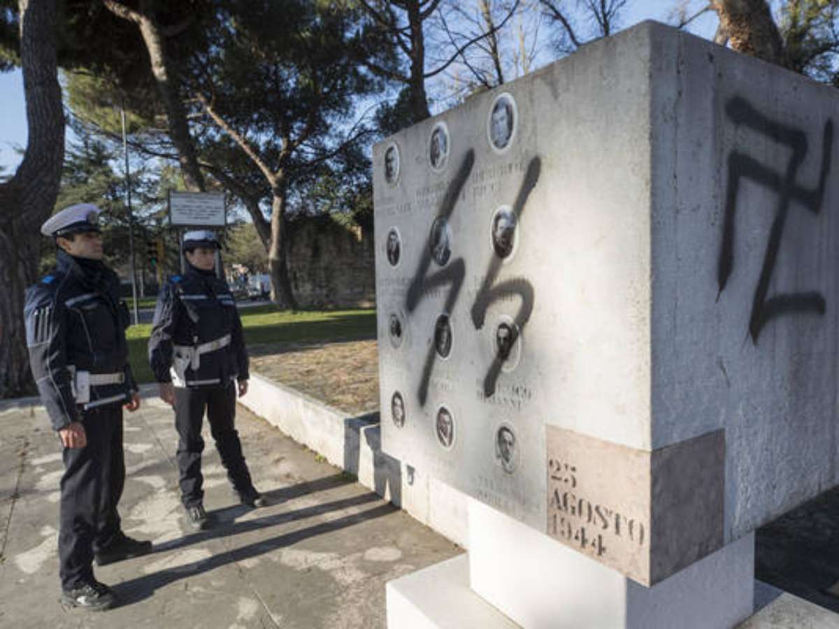 A Itália foi palco de mais um ato antissemita na noite desta quinta-feira (21), quando vândalos profanaram um monumento que lembra o massacre de 1944 na Ponte degli Allocchi, no centro de Ravenna. A placa em homenagem a 12 pessoas, em sua maioria ligadas aos grupos de partigiani - como são chamados os heróis da resistência antifascista na Itália -, foi pichada com insultos e suásticas nazistas. Além disso, a mensagem 'Ciao Artioli' foi escrita no memorial, uma referência a Ivano Artioli, presidente da Associação Nacional dos Partisans Italianos (Anpi).